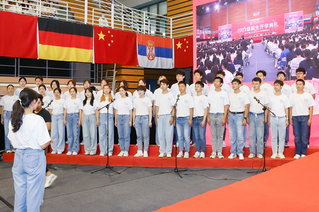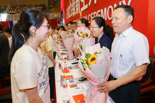 楊丹作了題為“做又紅又專又雅的北外人”的講話,對2023級新生表示熱烈歡迎和祝賀。他回顧了北外80余年的辦學(xué)歷史和發(fā)展成就,并對新一代“北外人”提出三點(diǎn)期望: