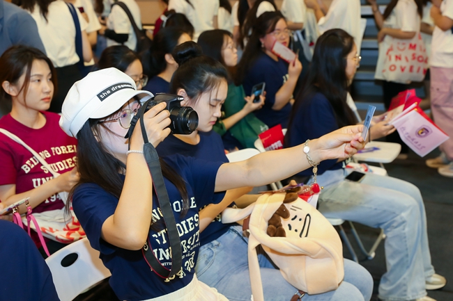 楊丹強(qiáng)調(diào),來到北外,不僅僅是踏入了大學(xué)的校門,更是踏上了走向世界的階梯,同學(xué)們將會(huì)感受到語言與文明的碰撞、眼界與思維的拓展。期望同學(xué)們不負(fù)時(shí)代、不負(fù)華年、不負(fù)青春,做又紅又專又雅的北外人!