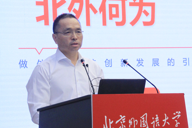 楊丹作了題為“強國建設、北外何為——做外語院校創新發展的引領者”的專題報告。