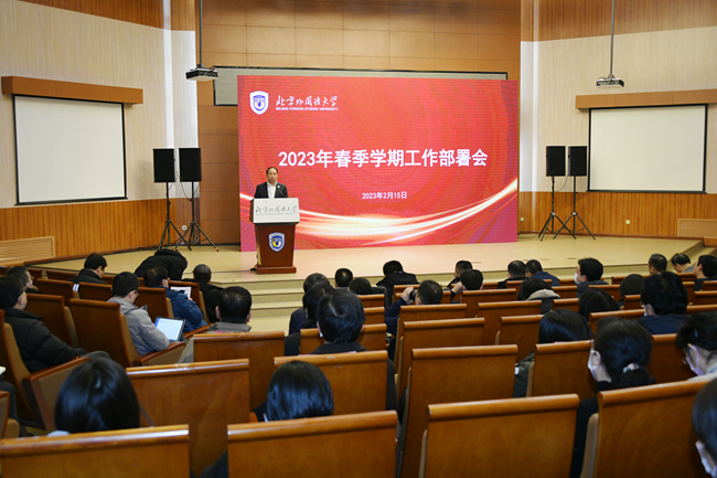 2023年2月15日,北京外國語大學2023年春季學期工作部署會在阿語樓國際會議廳舉行。