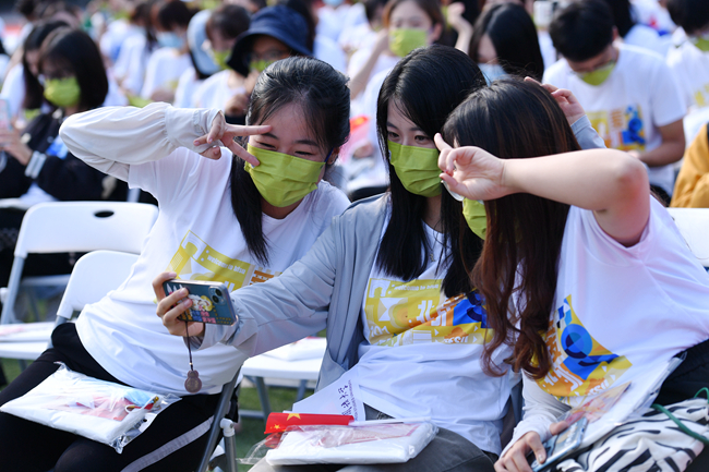 此次開學典禮通過人民網、央視網、B站和校園網等視頻平臺進行實況直播,部分因疫情未能返校的學生、留學生以及學生家長們通過網絡直播觀看典禮,共同見證人生新階段開啟的重要時刻,通過直播屏幕與現場師生互動,分享欣喜與激動。