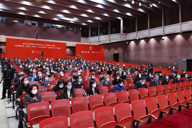 王定華強(qiáng)調(diào),六年來(lái)的成績(jī)來(lái)之不易,形成的經(jīng)驗(yàn)彌足珍貴。這歸功于教育部黨組、北京市委的堅(jiān)強(qiáng)領(lǐng)導(dǎo),歸功于學(xué)校領(lǐng)導(dǎo)班子新老成員的接續(xù)奮斗,歸功于廣大黨員干部和師生員工的不懈努力,歸功于社會(huì)各界、廣大校友的關(guān)心支持。王定華代表學(xué)校黨委向長(zhǎng)期支持北外的各級(jí)領(lǐng)導(dǎo),各界朋友和廣大校友,向?qū)W校老領(lǐng)導(dǎo)、老同志、各民主黨派和無(wú)黨派人士,向全校黨員和師生員工,表示最誠(chéng)摯的感謝和最崇高的敬意!