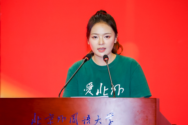 研究生新生代表、國際關(guān)系學(xué)院外交學(xué)專業(yè)的韓江雪結(jié)合在北外六年的學(xué)習(xí)和工作經(jīng)歷,表達(dá)了對新時代外語人才使命的思考,號召同學(xué)們勤奮學(xué)習(xí)、勇?lián)?zé)任,努力成為有家國情懷、全球視野、專業(yè)本領(lǐng)的復(fù)合型人才,為推動世界和平與繁榮貢獻(xiàn)智慧與力量。