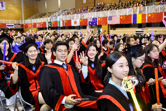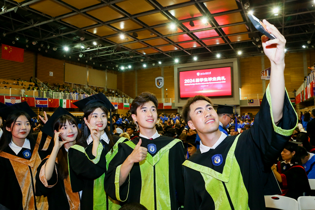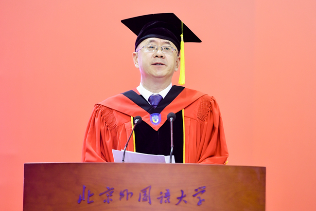 賈文鍵以“兼容并蓄、博學篤行”的校訓為指引,激勵畢業生們以博大的胸懷擁抱世界,勇敢面對未來挑戰,不僅為人民服務,也為世界增添光彩,共同書寫人類命運共同體的美好篇章。